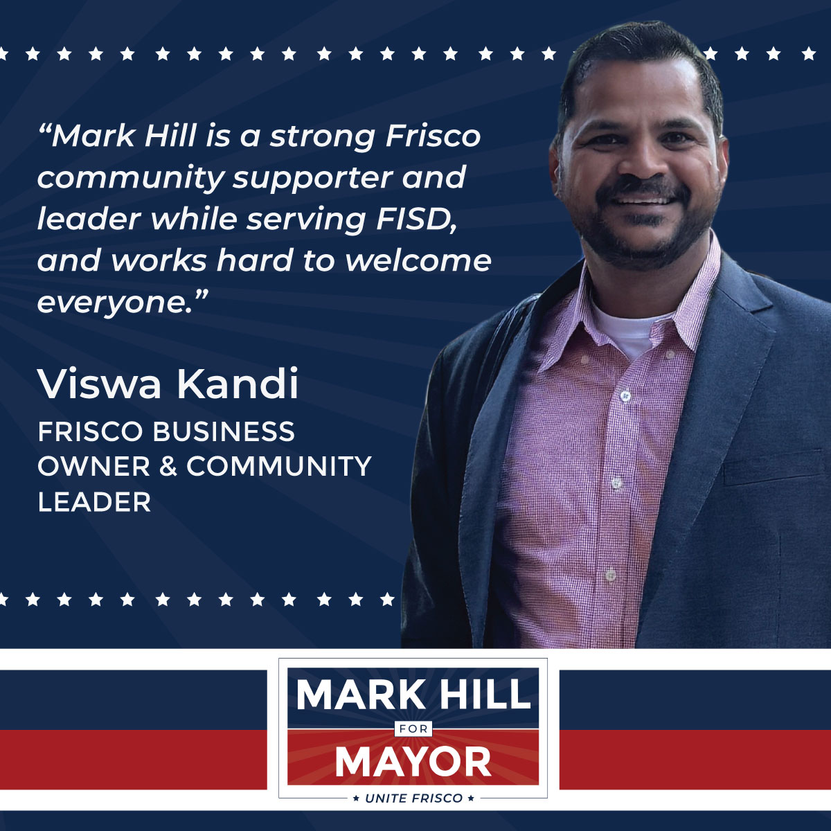 Frisco’s future is built by the people who care enough to get involved. Join Mark Hill’s campaign today: volunteer, spread the word, and help us Unite Frisco.